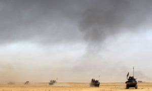 After one week, progress was made to the north, south and east of Mosul despite Isis using a variety of defensive tactics. Advancing forces faced roadside bombs, dug-in snipers, fleets of suicide car bombs and oil fire haze. The jihadis also launched diversionary attacks, most significantly in Kirkuk. It was also reported that Isis fighters were forcing people from the countryside into the city to use as human shields. Most progress was made east of the city, where Iraqi forces took the baton from the peshmerga who overwhelmed several villages in the first few days of fighting. A southern push by Iraqi army troops and Shia militias lagged behind the faster-moving eastern axis.