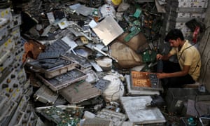 In cities such as Moradabad and New Delhi, pictured, huge quantities of electronic waste arrive daily. More than nine metric tonnes of waste arrive in Moradabad daily Photograph: Amit Dave/Reuters