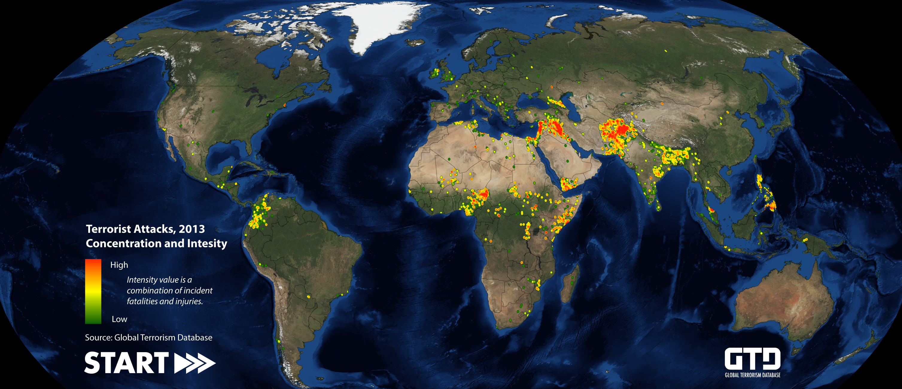 2013 Terrorist Attacks Concentration Intensity Map (START Global Terrorism Database)