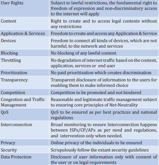 *Neutrality: The committee "unhesitatingly" adheres to the "core principles" of net neutrality, and has set up an 15-point test to check whether services conform to these principles, which you can see here.