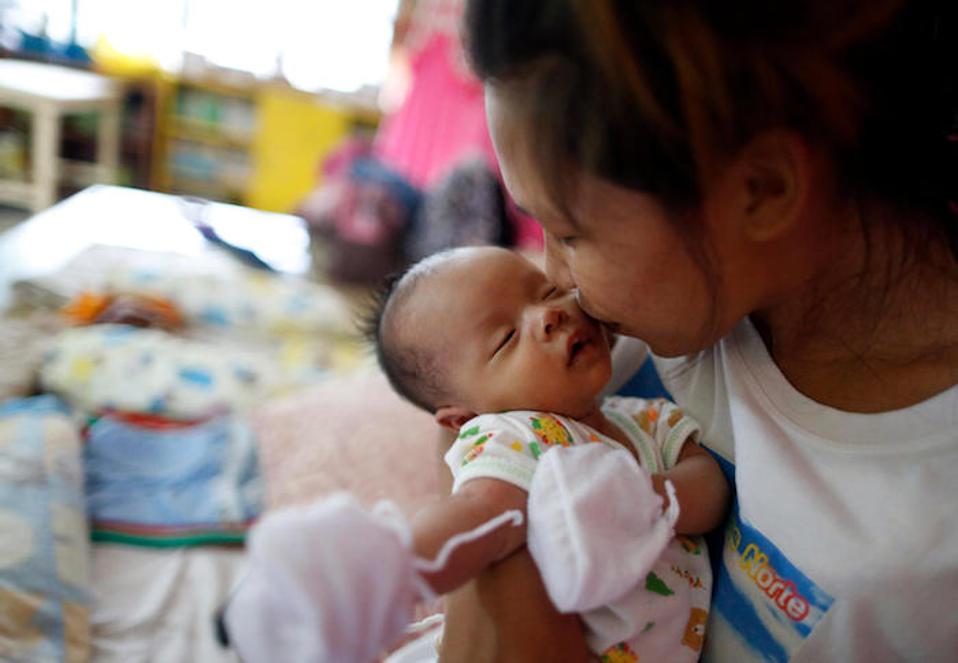 Fleeing Super Typhoon Mangkut, 22-yaer-old Rogeline kisses her 1-month-old daughter, Kristan, at a school turned evacuation center in Luzon's Ilocos Norte Province on September 14, 2018. © UNICEF/UN0235931/MAITEM