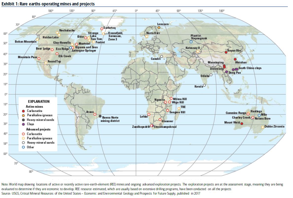 Econintersect editor's note: @tracyalloway has tweeted a BofAML map which shows extensive exploratrory and development activity for rare earth metals outside of China.