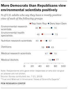 More than most other issues, our acceptance of the human impact on climate change is contingent on our trust in science and environmental scientists. For most of us, It is a matter of trust and not intelligence since we cannot do the science ourselves. Americans of all stripes generally trust scientists (86%), except for environmental research where there is a 30-point gap between Republicans and Democrats, a gap – more surprisingly – that is persistent among those with high science knowledge.