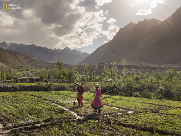 Potato crops in the Chipursan valley, Pakistan, are irrigated by the Indus water tower. Matthew Paley/National Geographic, Author provided
