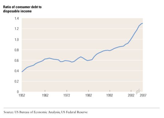 US household debt started rising in the early 1980s, and its growth accelerated in 2001.