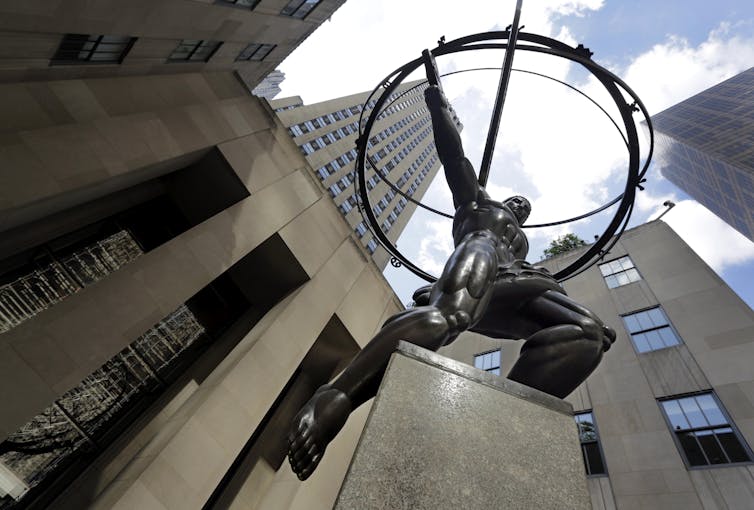 Ayn Rand compares entrepreneurs to Atlas, the Greek god who holds up the world. AP Photo/Richard Drew