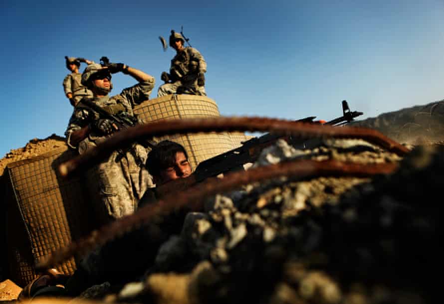 Troops from the US army training Afghan National Army soldiers in 2009. Photograph: Dima Gavrysh/APAt the outset, the US began transforming the Afghan National Army from a light-infantry force to a combined-arms service with army, air force, and special forces element.