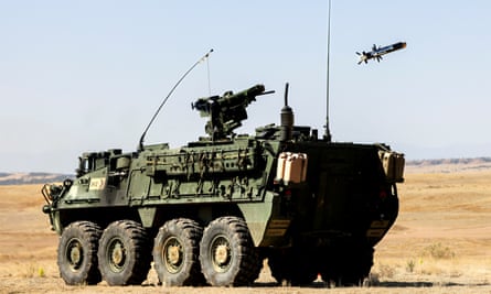 A Javelin missile is fired from a US Stryker infantry carrier vehicle in Fort Carson, Colorado. Photograph: Michael Ciaglo/Getty Images